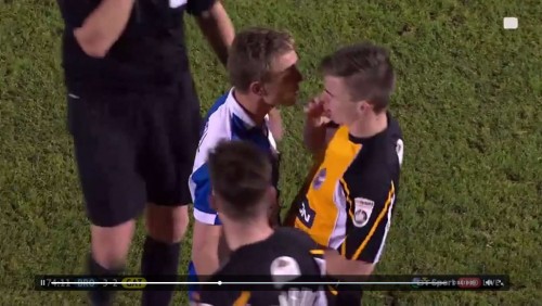 Un jugador del Bristol Rovers ha recibido una tarjeta amarilla por besar a un jugador del equipo contrario.